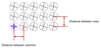 Selected plant symbol with a 3' radius with 3 rows and 5 columns at spacings of 7 and a 0 angle -