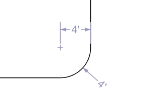 The Fillet command will cut off a segment of a corner at a specified depth and replace the corner with an arc to "round" the corner. The line segments creating the corner must intersect each other or the command will not function. This command will not fillet curve or arcs, only line segments. The corner may be a single line made up of three points or more.