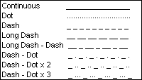 Enter a value for the scale of the line style in the Scale text box. The scale represents a factor indicating the number of times the pattern in the line style will repeat itself. By default, all new line styles are set to a scale of 1.00 unit. The smaller the scale, the more repetitions of the pattern are generated. If the scale setting becomes too small or the line is too short, the line may not display one full pattern and the line will be displayed as a continuous or solid line.