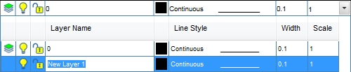 Each new layer is automatically assigned to the Continuous line style. You can use line styles to distinguish entities from one another visually and make your drawing easier to read. Click on the line style name and select the desired line style from the drop down list to assign to each new entity drawn on this layer.