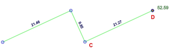 Move the cursor to a new location and click one time with the left mouse button to set a second point for the end of the measurement. The distance between the two points will appear along the measured angle.