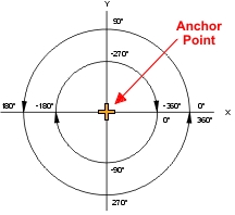 Angles begin with the 0� angle directly horizontal to the right of the current Anchor Point location. An angle of 90� is straight up from the Anchor Point. A 180� angle is to the left and a 270� angle is straight down from the Anchor Point. Refer to the following illustration for clarification.
