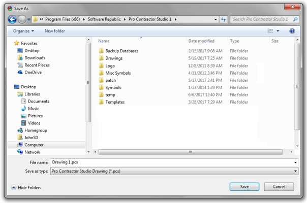 Change to the folder where the drawing is to be saved on the computer.Enter the name of the drawing file in the File name text box. It is not necessary to enter the .pcs extension.