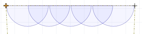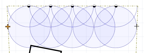 Drag the mouse cursor to the opposite end of the row. Sprinkler arc patterns will be added to the row as the length increases. The first symbol and arc pattern will be removed from the row. The symbols will be spaced evenly along the row. If you hold down the Shift key while dragging the mouse cursor, the sprinkler symbols will be spaced at exact nozzle to nozzle spacings.