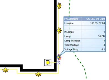 Once calculated, the voltage information will appear in the Lighting Calculations dialog box.